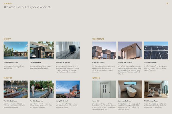Cluster premium Yara at The Kaia yang dipersembahkan saat ini tersedia dalam 3 pilihan tipe rumah yaitu YARA 8 dengan lebar lahan 8 meter, YARA 10 dengan lebar lahan 10 meter dan YARA 12 dengan lebar lahan 12 meter. Kesemua tipe YARA ditawarkan dalam 2 pilihan lokasi baik di area hook maupun badan. Beberapa keunggulan Yara at The Kaia sebagai bagian dari THE KAIA yang membedakannya dengan cluster biasa adalah;